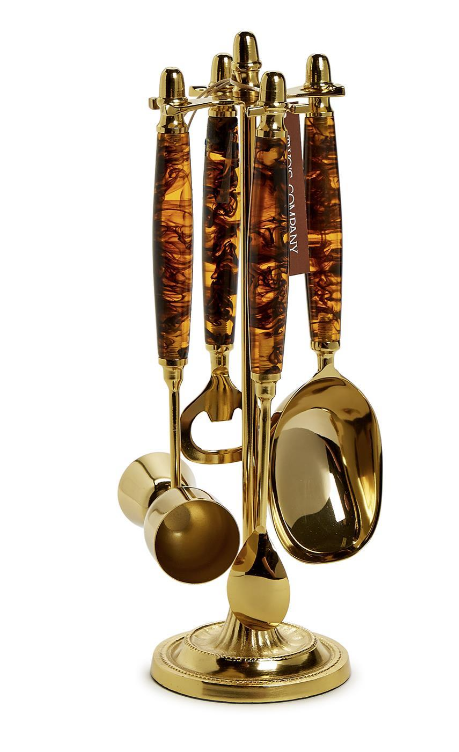 Introducing our exquisite 4 Pc Tortoise Print Bar Set with Stand, a must-have addition to any home bar or cocktail enthusiast's collection. Crafted with meticulous attention to detail, this set combines functionality with elegance, ensuring every drink is served with style.